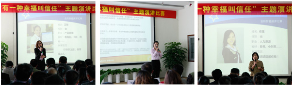 2012年12月13日,安防智能(中国)有限公司“有一种幸福叫信任”的主题演讲比赛总决赛在宿舍楼四栋一楼多媒体会议室隆重举行。经过将近两个月的初赛和复赛,共有6名选手脱颖而出,晋级总决赛。安防智能(中国)有限公司总裁吴志明、常务副总裁时志杰等多名领导出席了本次比赛并担任评委。