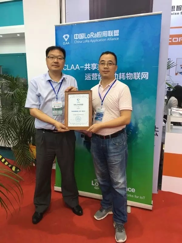 (中国LoRa应用联盟主席刘建业向中安消物联研发总监陈兵颁发加入联盟证书)