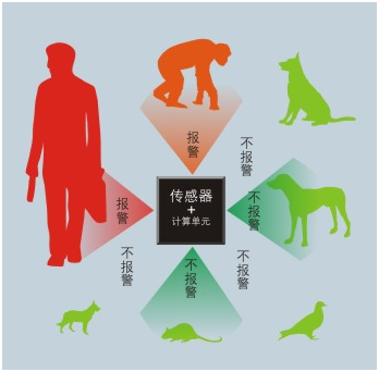 被动式红外探测器发展到今天,在技术上已经比较成熟,防小宠物是被动红外探测器的一项基本,每个生产厂家对抗小宠物干扰的处理方式是不一样的,红外探测器主要有两种防宠物方式: 一种是物理方式,即通过菲涅尔透镜的空间分割方式的改变来降低由于小宠物引起误报的概率,这种方式是表面的,效果也是有限的。第二种方式是软件,利用软件算法对人和小动物能量波形进行比较,从而判断是人还是小动物。这种方式也是有限的,不能保证探测器视区内每个点都实现有效防宠物。