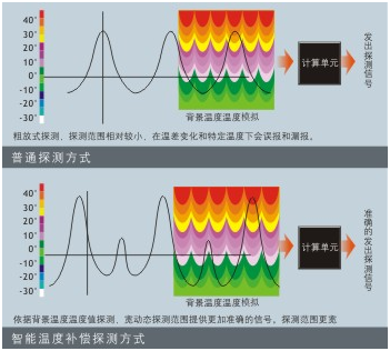 被动红外探测器在环境温度25℃为标准工作环境,但是在实际的使用中,环境温度,经常背离标准环境温度,所以报警阀值需要随环境温度动态调节才能使探测器达到最佳的探测效果。