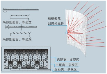 新菲尼尔透镜的采用,让探测器的有效探测距离更远(从12m达到20m),灵敏度更高(真正实现一步探测、0.2m/s低速探测),误报漏报几率更低(信噪比提高,让信号放大倍数从15000降低到5000,直接降低误报漏报几率90%以上),探测角度更为精准(真正实现视角范围内0盲区报警)。