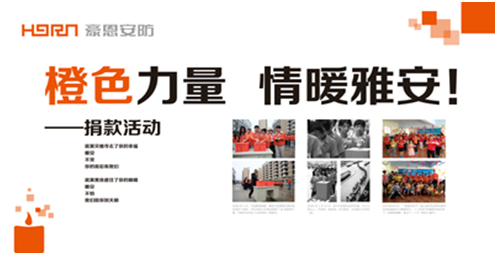 为了支持雅安人民抗震救灾,减轻地震给灾区人民造成的损失和伤害,豪恩积极响应集团公司关于为四川雅安芦山地震灾区捐款的号召,发扬“一方有难、八方支援”的精神,迅速行动,精心部署,面向公司全体员工发出“橙色力量,情暖雅安!”爱心捐款的倡议。