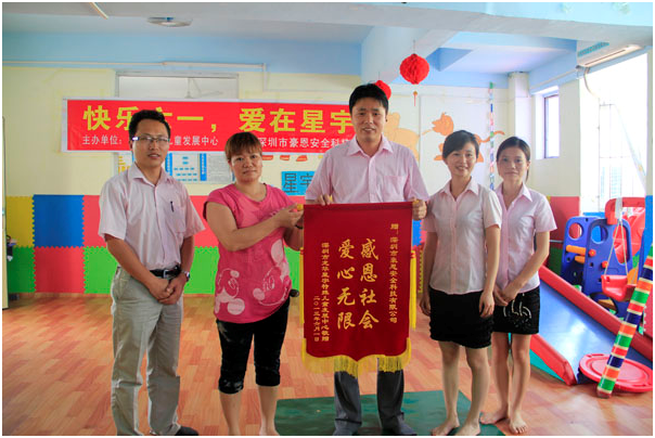 2013年5月30日,在六一儿童节到来之际,豪恩安防副总经理王辉一行来到深圳市星宇自闭症康复中心,为孩子们送上了礼物和关爱。