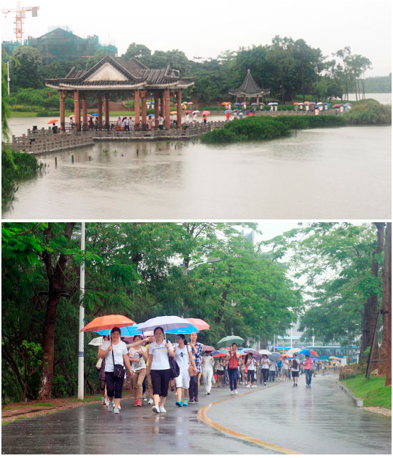 5月5日,公司组织全体职员开展东莞松山湖徒步穿越活动。穿越行程为松湖烟雨——游客服务中心——荷香水榭——睡莲池——停车站。天公不作美,一早上下起了雨,但是这并没有浇灭豪恩人的兴致,一路上,风声雨声欢笑声,声声入耳。潺潺细雨,反而为这段行程增添几许浪漫氛围。