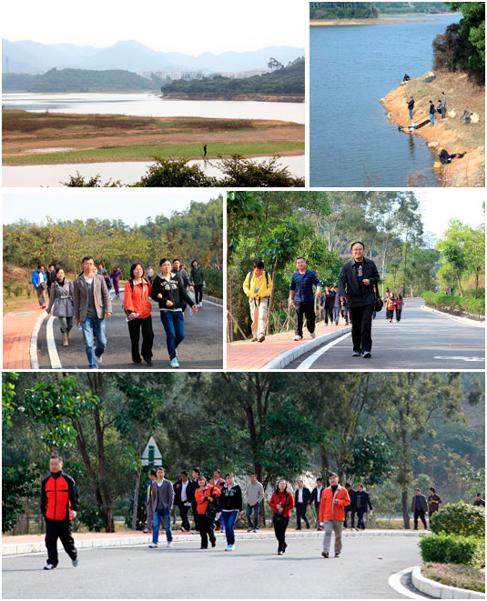 活动由早上8:30开始,公司全员出发,徒步穿越黄江绿道至黄牛埔水库段,行进里程数约七公里。