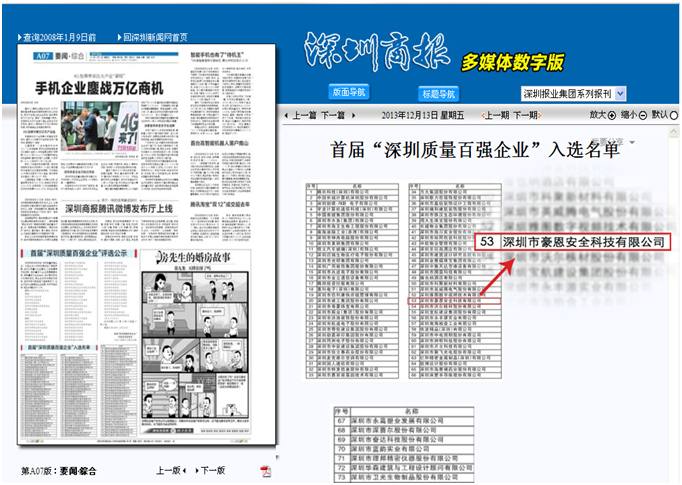 入选“深圳质量百强企业”,这是一种肯定,更是一种责任。未来,豪恩安防继续贯彻市政府“质量强市”发展战略,把质量作为企业拼搏最高目标,坚持用高品质的产品,为世界带来安全、和谐,做享誉全国乃至世界的代表着“深圳质量”的产品和企业。