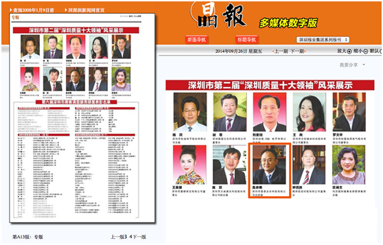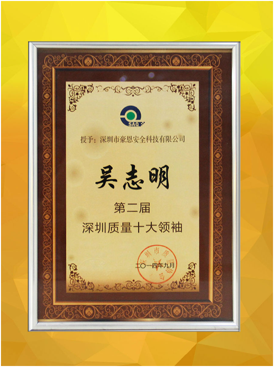 2014 年 7 月 23 日,深圳市第二届“深圳质量十大领袖”评选活动正式启动,经相关行业协会和组织推荐、深圳市质量协会初审,豪恩安防获得参与评选的资格,特邀豪恩总经理吴志明参与评选。