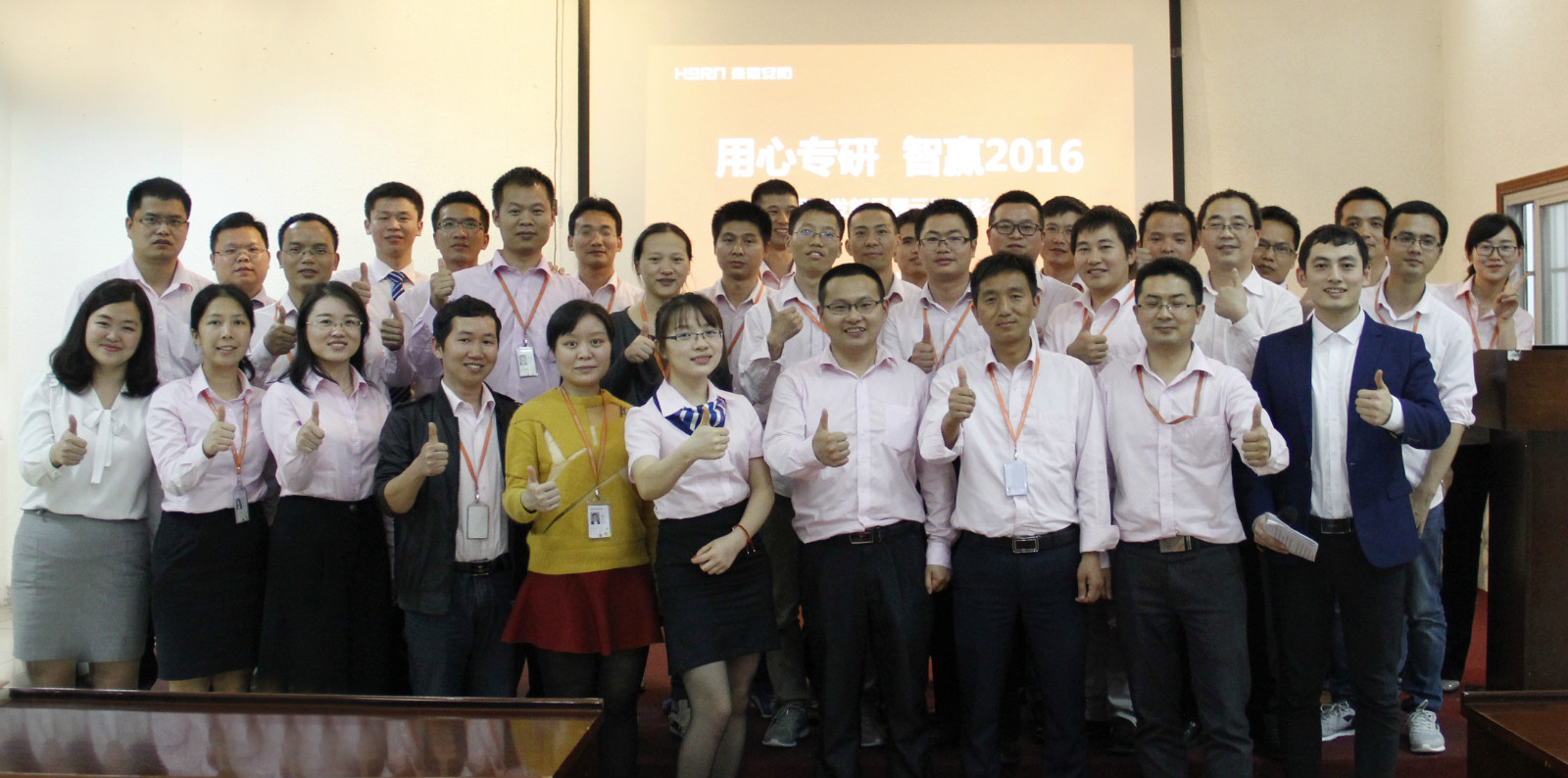 最后总经理赵倩女士做了总结发言:首先感谢所有的研发人员和工作人员多年来的努力,公司已经连续12年蝉联“中国安防十大民族品牌”奖,并且公司和华为、京东等国内外众多知名品牌取得了合作,在民用领域,首款T1物联网报警套装在京东取得了3天破90万的众筹成绩,公司的竞争力和知名度在行业内外都属于佼佼者,但是,面对市场竞争,我们还必须不断前行和努力,产品要不断创新,品质要不断提高,今年,公司制定了新的研发规划,提出了“用心专研,大干60天,智赢2016”的口号,我相信,经过大家的一起努力,我们一定会发生“质”的变化,也希望所有的同事能一起鼓足干劲,携手努力创造新的2016。
